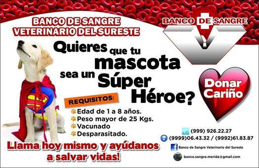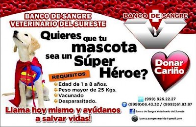 The bloodbank is looking for animal donors... dogs and cats that will pledge to donate their blood every quarter. They currently have thirty animals that are participating quarterly. In exchange for their donation, the animals will get a free veterinary checkup every three months. There is currently a high demand for blood and not enough donors. C'mon, Merida expat community... can we help? Donor requirements are as follows: