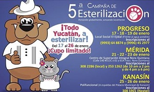 Between Friday, January 17, and Sunday, January 26, spay and neuter clinics will sterilize approximately 3,000 pets in Merida, Progreso and Kanasin. Fifteen veterinarians from the United States, Canada, Slovakia, India and Mexico will provide services, along with twenty local veterinarians. The event has been organized and supported by: Servicios de Salud de Yucatán, Planned Pethood, Instituto Municipal de la Salud in Merida, Progreso and Kanasin, Albergue Franciscano del Animal Desprotegido (AFAD) and all of the many Yucateco and expat volunteers. The size of this event, and the support it now receives, has been a long time coming. Every Yucateco and expat who has worked with this program can be proud of having a hand in making life so much better for these pets and their people.