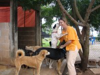 Most of the dogs stay together in the main pen. Last time we were there, there were about 30 grown dogs, including beautiful golden labs, mutts, a dalmation and about 15 puppies. There were a few sick dogs that are being cared for and nursed back to health as well. The cats and kittens were kept in a separate location. What surprised us the most was how friendly, gentle and easygoing all these dogs are. We've gone into the main pen a few times now to meet and greet the dogs, and they all just want to be loved, petted and scratched behind the ears. There hasn't been any fighting or growling and they all seem pretty happy. They certainly did not seem like frightening or scary street dogs.