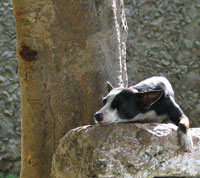 The Xoloitzcuintle does seem somehow ancient. The coated variety does not have fur, but they have very short hair like a deer or horse. They have almond-shaped eyes ringed with black "eye-liner", traces of a mane around their unusually long necks, bat-like ears and rubbery skin exposed on their bellies. We consider them the essence of dogness and they are probably the most wonderful dogs we have ever known: gentle, sweet-natured and incredibly hardy. They don't shed much and they don't smell, but they can wolf down an entire chicken from Pollo Brujo - bones and all - without taking a breath.
