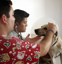 One of the most important people a pet owner needs to know, as you can imagine, is a veterinarian. There are many veterinarians here in Mexico and we've put a short list of our favorites at the bottom of this article. Apparently, it isn't as difficult to get into veterinary school in Mexico as it is in the States. That means there are more vets, but their skills and experience vary. If your pet is a member of the family (like ours is), it is important to find a vet that you and your pet can trust. We have found some wonderful vets and can vouch for the care they have given our animals. One of the things we LOVE about vets here is that house calls are a common practice. So the cat gets her allergy shot at home. And when our dog, URL, had his backside visited by a tourist bus, our vet was at our house within an hour to care for him - on a Sunday!