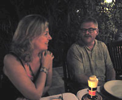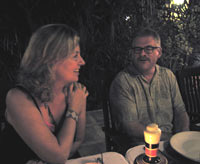 About halfway through the festivities, the skies clouded over and it started to rain. As the rain built up into a real downpour, all the waiters appeared with big patio umbrellas and set them up over our heads for ten minutes until the rain stopped. Before the umbrellas went up, we improvised by putting our napkins on our heads, a time-tested and sure-fire way to get a party started. The waiters were laughing and we were laughing and it seemed like the sky was laughing til it cried. We were reminded again of the beauty of a tropical downpour: it's refreshing, it doesn't last long and it's more a delight than a problem.
