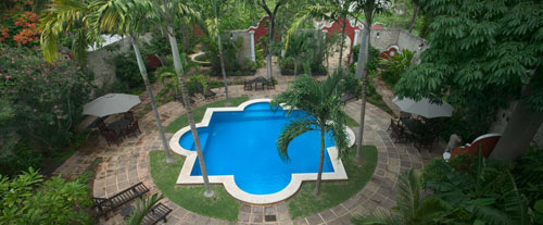 After much discussion and a mental review of the available venues, we decided on The Villa at Merida, a boutique hotel in Merida's centro. This hotel has seven guest rooms in a beautifully renovated colonial building on Calle 59. It is probably one of the more expensive hotels in the city, with hacienda-like ambiance and personalized service. What it also had that we cared about was a kitchen, a full bar, a competent staff and a lovely garden surrounding the pool.