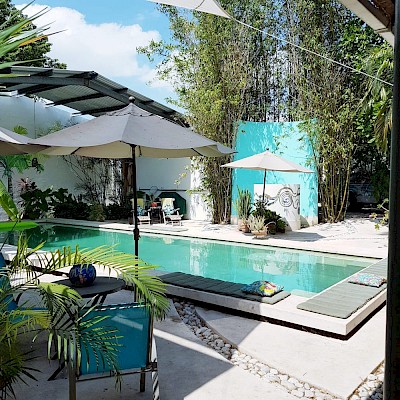 This house is located less than two blocks from Paseo Montejo, the grand boulevard of Merida, at the outer reaches of the northern Barrio, Santa Ana, in the fast growing hotel district. The city center, la Plaza Principal, is exactly one mile to the south of the house. It has 29+ meters of street frontage, and over 34 meters depth (property: 960m2, construction: 541m2).