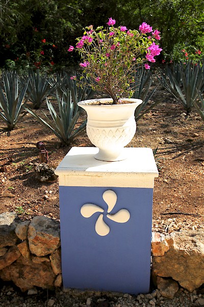 After we returned to the hotel, we visited the Chocolate Museum that is located within short walking distance of the hotel. We found the tour to be extraordinarily educational and interesting. On the path to the museum’s entrance, we noted pots of flowers with the strange symbols that were on the hacienda gateposts. What did they represent? No one at the museum could tell us.