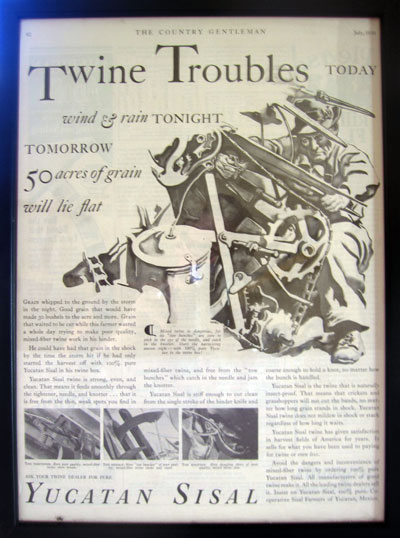 A few months ago, we found this printed advertisement for Yucatan Twine on eBay while searching for anything related to Yucatan. We had it sent here to Merida and framed it, and it now sits in our office. The other day, we were reading it again and thought that we would share it with our readers, as it really is an interesting peek into the shared history of the United States and the Yucatan Peninsula.