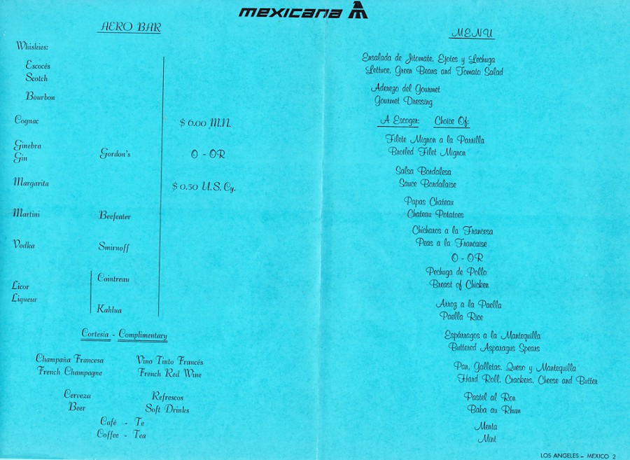You probably dressed up to get on the plane, because traveling by plane was a bigger deal then. On the plane, you read a book or a magazine because there were no movies on planes yet. They may still have allowed smoking on the plane, but you were fine because you were in the no-smoking section. The stewardesses wore high heels and tight skirts and served you a full meal... take a look at the menu reproduced here. You might not even get that in a first class seat today! (Just click on the photo to enlarge it so you can read it...)