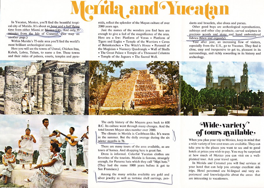 Looking through the documents revived our curiousity about the changes that have happened in Yucatan travel over the last fifty years and we started investigating. Much has changed since the seventies in Yucatan, of course, but so much amazingly remains the same.