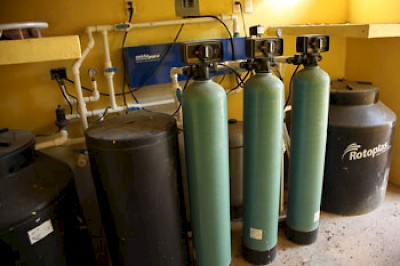 The soft water system was installed for peace of mind and for preserving appliances and plumbing. Since the Yucatán Peninsula is basically a large hunk of limestone, lime content in the water is high. Extended use of local untreated water leads to calcification in the interior of water pipes and serious long-range problems. In addition, unsoftened water is not as pleasant to use in the shower or tub. Soap and shampoo do not lather as effectively with hard water and the clothes washer is more efficient at cleaning clothes with the use of soft water.