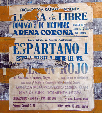 But as the day of the inauguration loomed ever larger, she wanted to do something else. And then, it struck her! For years, she had admired the bullfight/dance/lucha libre/concert carteles (posters) that are slapped up overnight on walls and telephone poles all over Mexico. Why not make a poster?