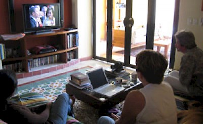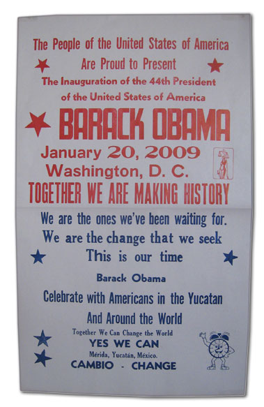 The day before Inauguration Day, the posters were ready... 100 carefully folded posters in a pink plastic bag. The posters were up in our office and on our front door when Barack Obama took his oath, many miles away. We were watching from our living room in Merida, Yucatan, surrounded by friends and dogs when he took his oath.