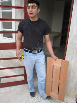 are at this moment resting in the pasillo, waiting to be installed. This man is also creating the custom-designed chandeliers (seven of them!) which are going to light the pasillo. Of course, we have now given him a lot more work than he was anticipating, so he's now a bit behind schedule. We're also waiting for Don Martín, the electrician, to actually electrify the first prueba (test) chandelier, install the focos (lightbulbs), and install the chandelier in place to make sure we like the way it looks. If all goes well, the iron man will then proceed to make the other six. If not, back to the drawing board.