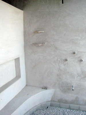 As we prepared to write this article, we read our last article (Building our House VI). Looking at the photos, even our reaction was "Well, not that much has changed in two months!". And it's true. The broad strokes of building concrete walls, shelving, tejebans, pools and floors has been done for awhile. The last floor finish to be done will be the stone patio between the office and the kitchen, and the stone is set for delivery the day after Christmas. But in general, we are now down to the detail work... what our architects call "the endless end", which we imagine would be fin sin fin in Spanish... a very poetic and valuable expression at this stage.
