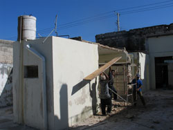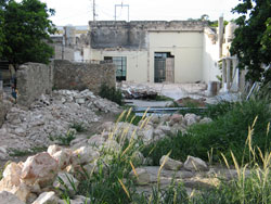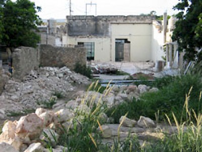 We introduced ourselves to one or two of the albañiles and then went back into the property to peruse the progress that had been made on demolition of the existing buildings. The design of our new house calls for keeping the front two rooms of the existing structure, which are the oldest and are built with mamposteria (stone and mortar) walls and high ceilings. The additional rooms were added on later and are typical cinder block construction, so they are fairly easy to demolish.