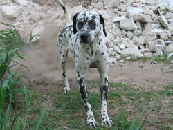 While we were there (walking our two dogs on leashes), the neighbor peeked over the wall and then her dalmation, named Mancha, came over to visit. The word mancha means "stain", "track" or "spot", like a dirty spot on your clothes that you need to clean. Mancha is a very macho dog and he has decided that our property is his. He doesn't bark or get nasty; he just pees on everything. (We don't actually use that word here. Here we say wixar, a popular Mayan expression that means the same thing.) After Mancha pees, he vigorously kicks up a lot of dust with his hind legs like a raging toro, probably to spread his scent as far around as possible.