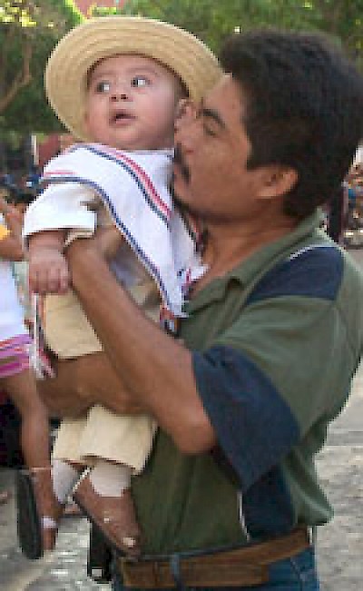 As you'll see in the video, we went to the church in Uman, a smaller city south of Merida and to San Cristobal in Merida, both centers of much activity on that day. We couldn't follow the riders and runners back to their villages to all the outlying churches where additional services and celebrations were conducted throughout Yucatan on Tuesday. But we did get to mingle with the crowds and see the babies dressed like little Juan Diegos or tiny Virgenes. We also saw the Bishop of Merida as he officiated at the wedding of a few (chosen?) couples in front of a packed church. We saw young women dressed traditionally as indigenias (indigenous), handing out flowers and fresh vegetables.