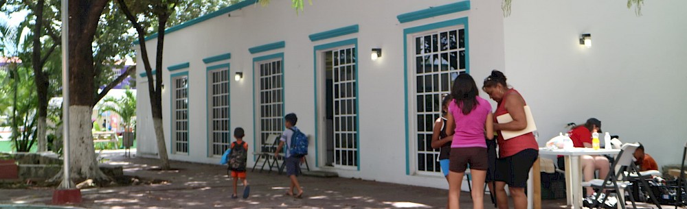 This year, FOC donated art supplies to the DIF senior center in exchange for use of some buildings in a neighborhood park. The long, rectangular building is in a central neighborhood and the volunteers were grateful for the air conditioning it provided.