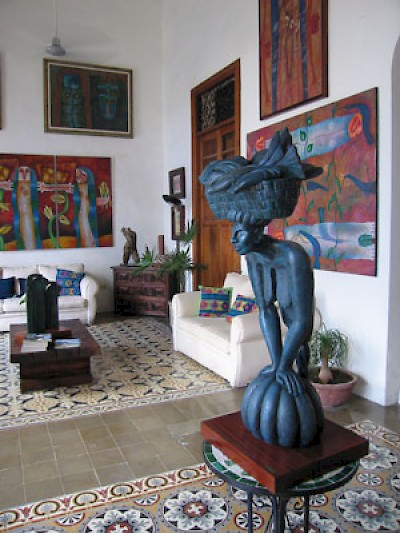 Just a block north of Centro de Artes Visuales, you will find the beautiful colonial that serves as both home and gallery space for the artists Melva Medina and Abel Vasquez. (Read the Yucatan Living review of these artists and their work) Walking inside their gallery, you will feel right at home in the presence of these truly gifted artists and their extraordinary creations. The space features mostly their paintings , drawings and sculptures (they are incredibly prolific) but they also showcase a few other guest artists as well (mostly from elsewhere in Mexico ). As a client and visitor, you are encouraged and welcome to take your time to take in the art that surrounds you.