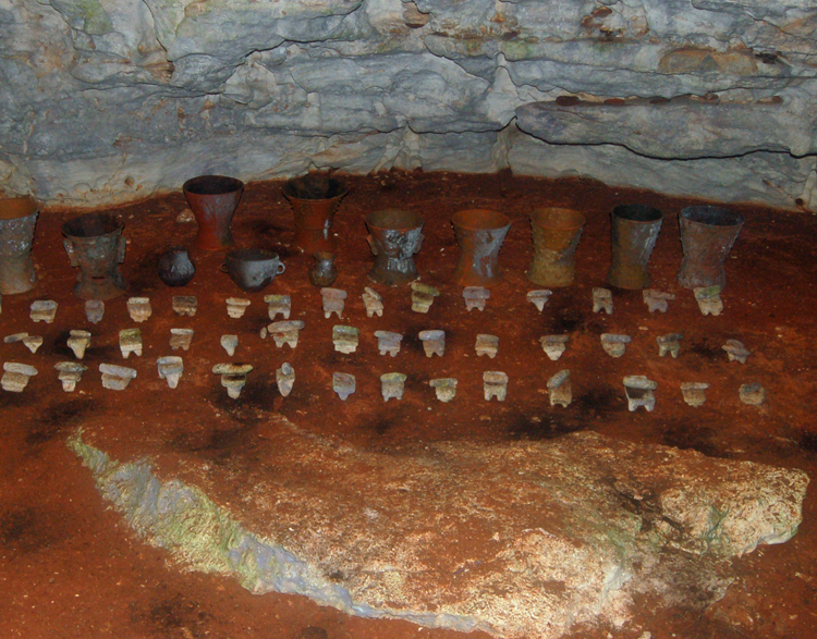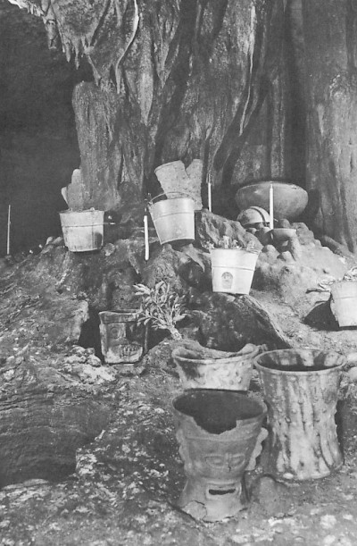 The night before everyone was to return to Balankanché, the gods made themselves heard, unleashing torrential rains on Yucatan. On October 20 at 7:45 in the morning, everyone gathered again at the mouth of the cave. Ho’il recited a brief prayer, and then led everyone into the bowels of Balankanché. At the altar they found four candles still burning. Like the number thirteen, four is a sacred number to the Maya. Ho’il declared this positive omen.