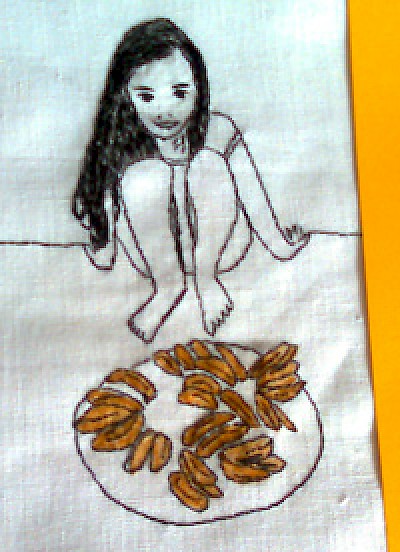 For the artists, they first require that their work is high quality. That it shows thought, care and pride. They also must produce works that demonstrate creativity and original thought. There are a million places to go to see embroidered huipiles done in traditional designs, for instance. Those are beautiful, but they aren't what AANY is about. The AANY organization is looking for original, unique and creative designs. Using the example of embroidery, take Elena Martinez, a woman who lives here in Merida. At the last AANY show, she had two tables of displays with beautifully embroidered towels, tablecloths, dresses... even a few rocks covered with crocheted "sweaters" (yes, we bought one!). Some of the designs were vaguely traditional, but many were completely original and modern. The materials (linens, cottons, wool) were exquisite and obviously chosen with care. She obviously possesses a well-developed sense of color and composition and it was a pleasure just to view her work, let along bring one home.