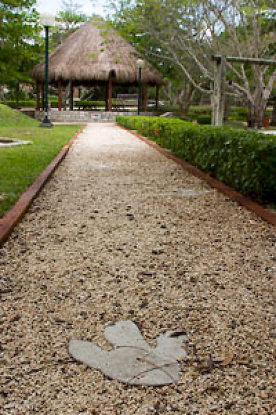 Natural-born creativity, though, has a way of bubbling, boiling and escaping into any activity and what better place to apply creative ideas than in the service of raising children? Katherine started illustrating children's books for her own children. She worked on a park project in La Ceiba, where she was part of a team that turned an abandoned lot into a shady park with pathways, playgrounds and whimsical touches, including the cement dinosaur fossil feet... a foreshadowing of the work she is doing today. When Gerda Gruber announced her first and only class for sculpture in 2001, Katharine applied and, referencing the various projects she had created for her children, was accepted.