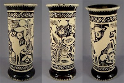 While most of the artisans of this type of pottery go nameless, there are some families that have a long tradition of creating quality work. Some of the named artists signed/sign their work, while others are recognizable only by their technique. The Lucano family, for instance, is one of the most famous families of artists and still makes touristware pottery in the same workshop on Avenida Independencia #131 in Tlaquepaque. Another famous artist, Jose Bernabe, is a well-known artisan of the Tonalá style. Other artists are not known by name, but their style was so unique and beautiful that they have been collected over the years and have been referred to by nicknames like "Baby Face" who painted beautiful faces on his people, "Trailing Tendril" known for the trailing tendrils in his designs or "Delicate Dan" who painted sweet looking animals with a narrow and delicate brush.