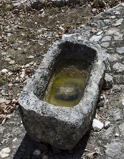 Hardly had the group set foot on the bottom before all about them the torchlights revealed traces of ancient man and his handiwork. Across one side ran a barricading wall of heavy stone, with other stones placed close at hand so the way into farther reaches of the cave could be quickly closed. Still further evidence of human occupation were the numerous haltunes or water troughs of hollowed-out boulders set to catch the drip of tiny springs that trickled from the walls.