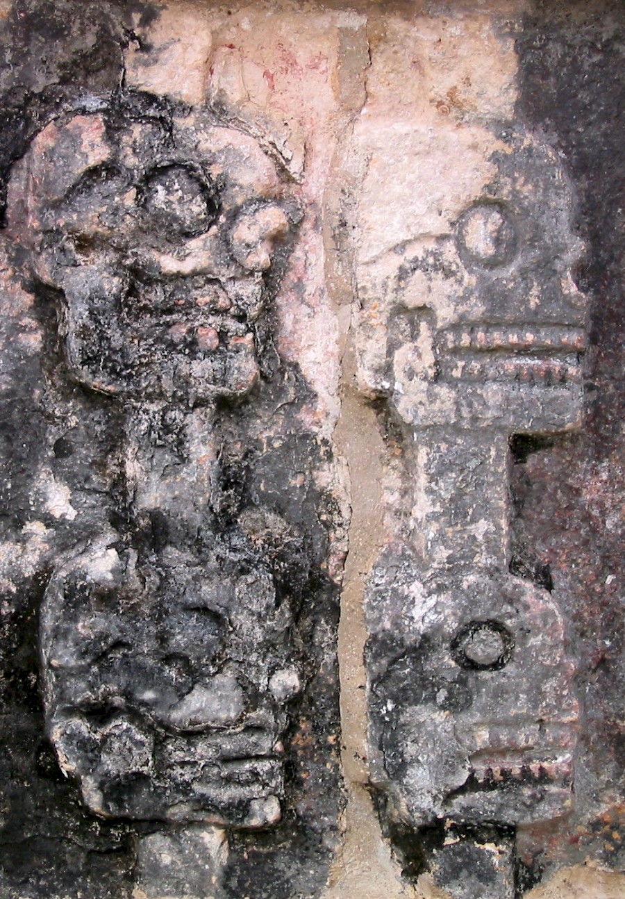 Within the walls of Chichen Itza, the sun gilded temple and palace. Breezes played softly through the court of a thousand columns set amid palm and acacia. The Aztec lords here took their ease in gardens blossoming with purple of mimosa and golden allamandas, where were walks of inlaid tile, seats of carved porphyry, the plash (note: nope, not a typo!) of fountains.