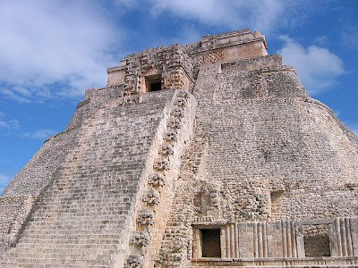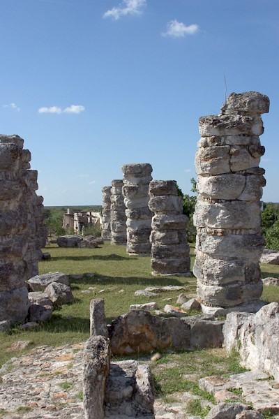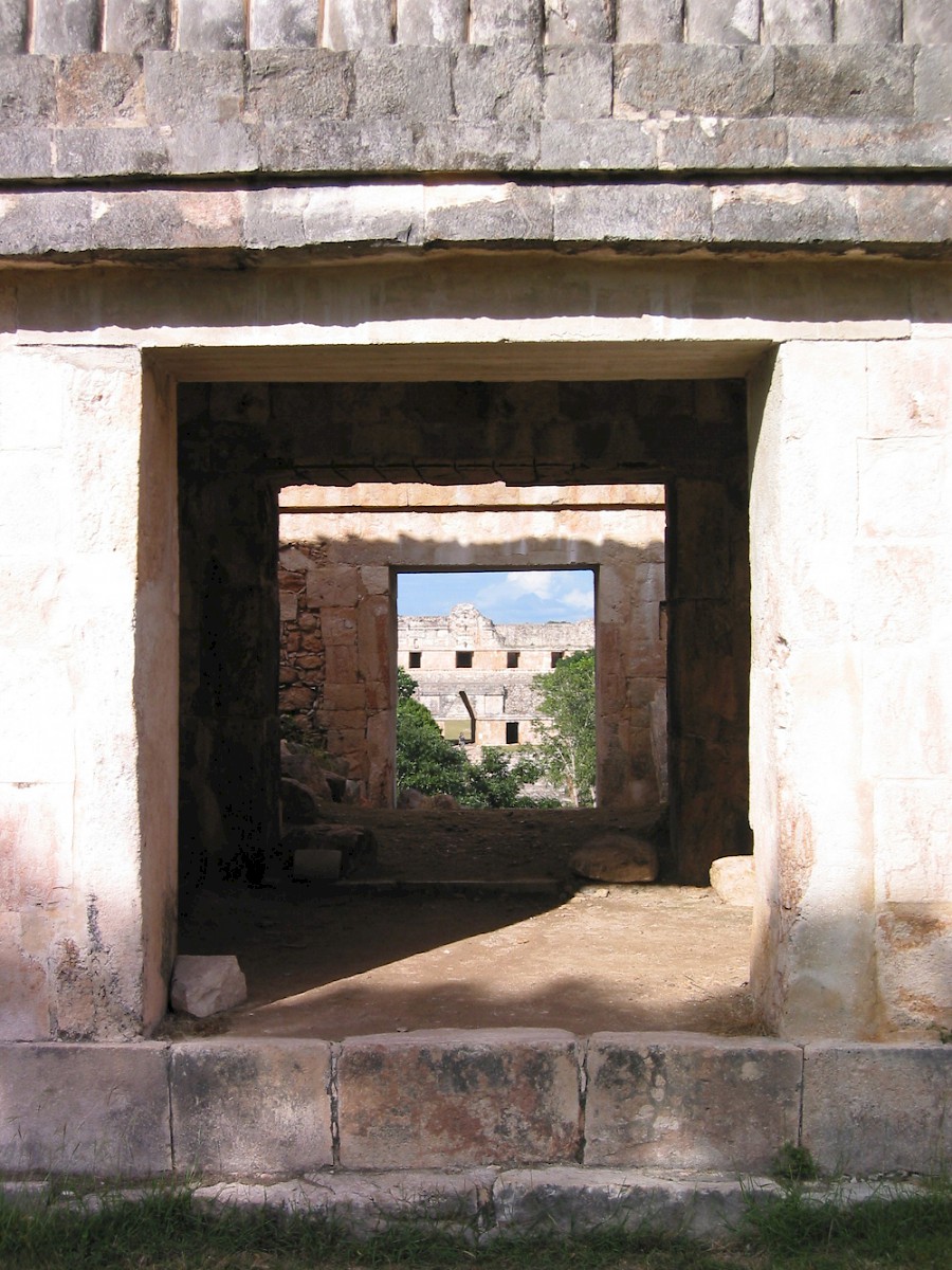 From ancient Akeh, with its jungle-swathed katunes*, the thirty-six calendar stones that marked time back through six thousand years of the Mayan empire, a similar engraved stone sent the wanderers west and south through a host of other "silent cities" -- Labna, profuse with sculptures, and Izamal and Uxmal.