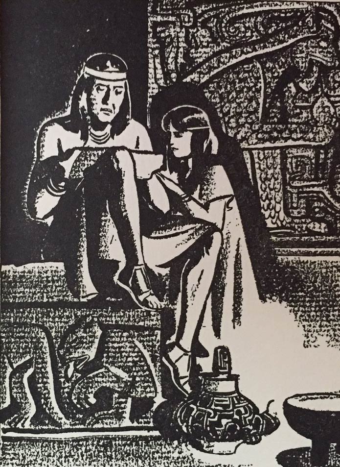 But there were other memories, too, bright ones that she kept to herself and enjoyed, and that helped her live through the monotonous existence of the slave camp. Thhis village of the bond-people lay beyond the protection of the city walls. Its sprawling ugliness stretched in irregular masses along the edge of the jungle. It was here, in one of the crouching, straw-roofed hovels that Nakah lived, with her grandfather, Copan the blind giant. Though by blood a princess, Nakah, by occupation was a farm labourer. Her hard little hands knew well the feel of spindle and spade.