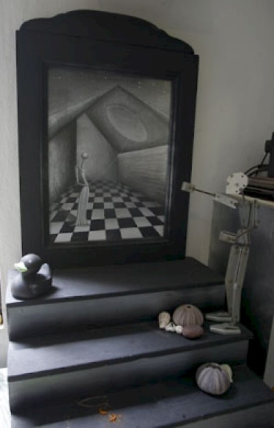 Because Samuel had never been formally trained in art school, he has never been infected with the tendency to do art for art's sake. His art demonstrates his opinion that art should not only be beautiful to behold, but laden with meaning and story. If there is any one artist from whom he has learned and who endlessly amazes him, it would be Salvador Dali. And though Sam's art is not Dali-esque, it is most definitely surreal. True to his intention, Samuel's paintings will delight you at first with their colors, their detail, their precision and their beauty. And then they will delight you later with their stories and their layers of meaning. Like another of his favorite artists, Remedios Varo, the stories told by his paintings grow in scope and detail with each extra viewing of the painting.