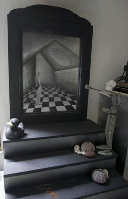 If you think about the art that traditionally springs forth from this part of the planet, it's typically large art. Pre-columbian Mayan art was executed in stone… big square pieces of stone with carvings, big stone pyramids, big stone snakes and jaguars. The Spaniards built massive colonial homes and haciendas in an attempt to make their own distinctive mark on this vast limestone tapestry of a peninsula. They built with big stone columns, huge wooden beams, massive stone walls. The art of Samuel Barrera, native son of Merida and 100 percent Yucateco, provides a complete counterpoint to the broad brush strokes left by Mayans and Spaniards. As he tells it, he strove from the beginning to make his art different from what he saw around him. In content, delivery and yes, even in size, he has achieved that goal.