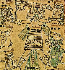 Ixchel is said to have fled a kingdom to the east, which was destroyed in a flood, with her lover, Itzamna the Sun King. Ixchel saved Itzamna's almanac--the Mayan calendar--and impressed him with her beautiful weaving. Their union created the Bacab, four deities who hold up the corners of creation, 13 children (two who helped create the world) and many other gods; the god of corn, the gods of sacrifices and stars, and the goddesses of the waters, night and paradise.