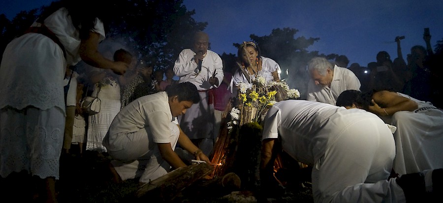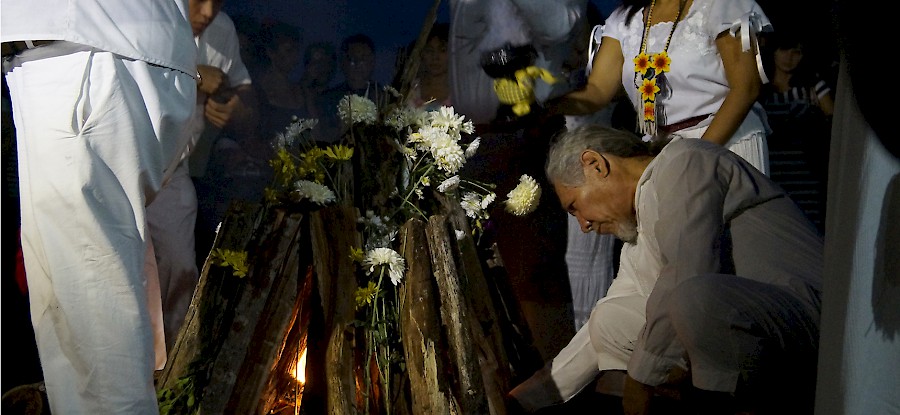 In charge of lighting the sacred fire was the priest j'kiín Can May Tiburcio, who was accompanied by j'men (Maya priests) Asterio Cen Dzul, Bacilio Cua and Antonio Oxte, who performed prayers in their own language. Their prayers invoked 'the grandfather in charge of time', who in this tradition is the one who determines the climate and energy conditions of the new Calendar Ha'ab, a period of 365 days.