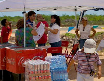 On a bright and sunny Saturday morning a few weekends ago, the Working Gringos set out across the flat expanses of the Yucatan Peninsula towards Motul and turned left at the sign to Mococha, about 20 minutes past the Periferico. We passed through Mococha and headed onward to Too (pronounced TOE). Too (yes, it is a funny name for a town... but there are funnier. Poop (pronounced poh-OPE) comes to mind) is no bigger than the big toe of the Jolly Green Giant... a cluster of about five houses and a church set down in the midst of green fields of henequen and monte. We turned right just past the church, and bumped along a dirt road for what seemed like miles, going around fincas and ranchos like a PacMan. Eventually, the road emerged into a clearing where a few bright tents had been set up against the sun, and a cluster of cars baked outside the tents.