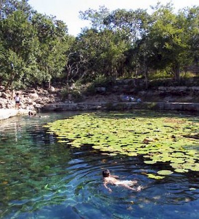 Next stop was Dzibilchaltun, one of the smallest but most charming of the Maya archaeological sites. There were very few people there yesterday and the weather... did we mention that? It was perfect. We stopped briefly in the museum, which we enjoy more every time we go, because the longer we stay here, the more we learn and so the more relevant the museum becomes. The House of the Seven Dolls was stunning against the bright blue sky (thanks to polarized sunglasses). And the walk from the House to the cenote at the other end of the sacbe (white road) wasn't quite as punishing as it usually is because the weather is so cool right now. The cenote there is one of the few above-ground cenotes, and it was being enjoyed by a bunch of local and visiting children. The water was crystal clear with fish and water lilies and a few lucky people basking in the sunshine. It was everything we could do not to jump in with our clothes on.