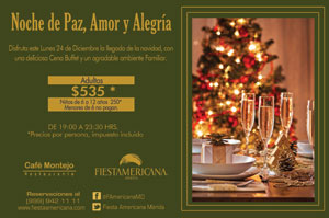 Cafe Montejo will be serving an International buffet Christmas dinner on the 24th. Price includes IVA, and la propina (tip) but no drinks. 50% payment required for reservation.