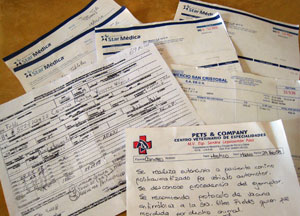 Next stop, the caja (cashier) to pay the bill. A complete list of all services and supplies used to treat her was produced from the computer: Gauze sponges (gasa de esponjear), sterile latex gloves (guante latex esteril), syringe (jeringa), etc. The complete bill came to $374.10 pesos (about $35 USD), including $70.35 pesos (about $6 US) for services rendered (curacion). After living here for six years, Working Gringa was prepared for a modest bill, but this still seemed incredibly reasonable.