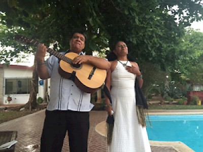 The Kraft group arrived on April 22, and Alicia and Peter held a welcoming reception for everyone, complete with a Cuban trio and un monton de mojitos. Dr. Patron and his wife, Gloria, hosted the despedida (farewell) dinner, complete with roving Mexican minstrels on April 27. A good group of local expatriates and Yucatecans showed up in the intervening days for the two tennis matches, choosing their sides with no agenda, but just to enjoy the competition.