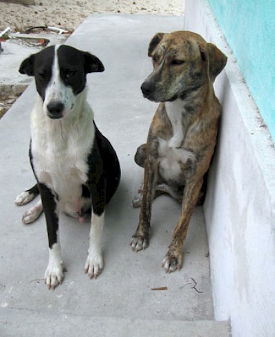 After the greeters calmed down a bit I slipped inside with the items from the car as my husband was coming out. He endured a similar greeting with the two amigas, however with much less patience than I. From that point on they must have discerned that it might be worth hanging around a bit longer. We went out again and later when we arrived back home after a fish dinner at Pepe Luise’s Restaurant, they were there ready to welcome us all over again. They seemed certain that persistence would pan out, and they were right of course. I cleaned out a small garbage pail to serve as a water bowl, mixed up some crackers with a couple of eggs, divided them into two separate pots and stepped outside with the appetizers. It was boldly clear that New York minutes happen in the Yucatan as well... the food was inhaled in a split second. That was the first of a month’s worth of meals to follow and without shadow of doubt to them, the seal of a contract between dog and man.