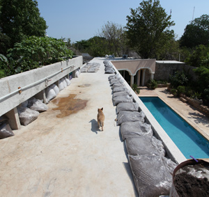 Never one to back down from a challenge, Robert spent a few brain cells and some investigative months figuring out how he was going to have a Victory garden at his renovated colonial home in Merida. He realized that while he didn't have a lot of land, or even a lot of soil for that matter, he did have a large and flat roof. He combined that asset with information his daughter told him about the Earthbox (see link at the end of the article). He tossed in his experience in Italy, visiting Puccini's home where his rooftop garden was all built at waist height, so he didn't have to bend down. And with all that composting in his active brain, he came up with what has proven to be a successful and productive roof garden system.