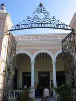 We joined our mutual friend as she accompanied the body from the funeral parlor, housed in a former home of Felipe Carrillo Puerto on Calle 59, to the city-owned cemetery where it was cremated. The funeral parlor, Funerales Perches, is a pink confection of architectural wonder. The rooms inside are cavernous, with highly polished floors, beautiful arches, fotos of old-time Merida on the walls, and the obligatory casket display. The cost for the services of the funeral home was under $800US. This did not include a casket, which is not required for cremation. It did include transportation from the hospital to the funeral home, and then again to the crematorium at the municipal cemetery west of downtown Merida. The cremation cost about $300 (as noted by a sign in the office) and with all the papers in order, was a quick process. After our mutual friend signed the paperwork, we were escorted to the door of the Horno Crematorio (the oven), where we met the body which was brought out of the back of a black Funerales Perches minivan. Three men moved the body into the horno, one of them pushed a button and they told us we could come back in two hours for the ashes.