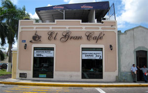 Probably one of the first places we ate when we moved here (it was right down the street from our new home), El Gran Café reminds us vaguely of an old black-and-white film about traveling in Latin America. They have a lot of bags of coffee displayed on their shelves, and they are somehow affiliated with Cuba (the owner is Cuban perhaps?). El Gran Café serves a lot of food (international, Mexican and Yucatecan), and it definitely makes a strong cup of coffee, as well as other coffee drinks. Their various buffets are pretty good, and the big picture window looking out onto Paseo Montejo is another good people-watching spot.