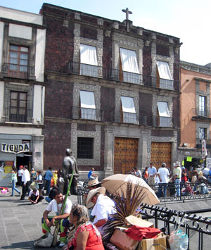 For the next five days, we would be accompanied in our photography work by the constant drumming of Aztec warriors on the zocalo, as well as the sounds of the crowds and the cries of people whose puestos (stands) set up just outside the building were selling everything from fresh tacos to cheap bracelets. Standing on the front balcony or on the roof of Seminario 12, we could see the temporary ice skating rink that is built on the square every Chirstmas, and a large bamboo structure being built by Colombian workmen, which in January 2008 will house an exhibit of photography by Gregory Colbert (something we are sorely tempted to return to see… Go to ashesandsnow.org and be tempted yourself!). At night, we could see all the Christmas lights that had been installed on the buildings surrounding the square, as well as the crowds of people milling around, playing on the hopscotch and Twister boards painted on the pavement, being blessed by the Aztec dancer/shamans, or eating tacos, tamales and elotes. We were definitely right smack dab in the center of Mexico, with all its noise, smells, crowds, fun and lights. We found there was so much to do there in the Centro, we never actually went anywhere else (Chapultepec, Polanco, Zona Rosa, etc.).