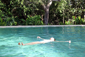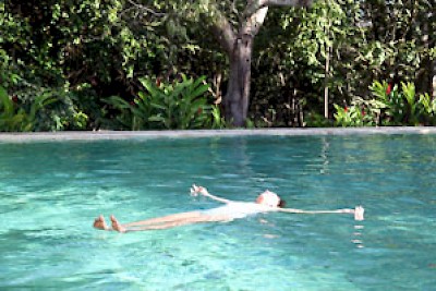 After lunch, we retired to the back forty behind the house, donned our swimsuits and frolicked in the swimming pools. After a few minutes, coconut ice cream was served as dessert at the side of the pool, and the Coronas and wine just kept coming. Needless to say, everyone was smiling all afternoon.