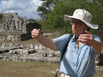 Promptly at 9 AM, the tour van from Catherwood Travels showed up and the tour guide, Julia Miller, came into our office, dressed in the archaeologist’s version of a uniform (khakis and a workshirt). She comes by her costume honestly, as she is a card-carrying archaeologist, has the experience of a female version of Indiana Jones (minus the snakes...) and has the good fortune to be the resident archaeologist for Catherwood Travels, based here in Merida. From the beginning, Julia exhibited patience and a peaceful demeanor around our happy and chaotic group. Getting eight people together at exactly the same time in the Yucatan is a lot like herding cats, but Julia and Juan Luis, the van driver and future Maya language consultant, were happy to wait as we collected ourselves and loaded up almost an hour later than planned.