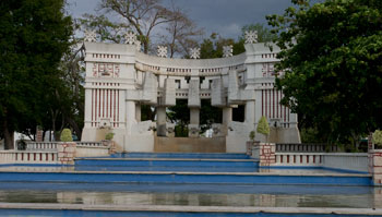 Throughout the park are monuments to all the different countries of North and South America, in a style that pays homage to the Mayan culture in direct opposition to the area's heritage of Spanish conquest. The park was built to represent the unity of the American people, pre-Hispanic cultures and socialist ideals. The park has a large fountain in one quadrant, a performance space with a concha (half-shell) open-air auditorium in another and the Jose Martí cultural center in a third. The fourth quadrant is fenced off and reserved as a children's play area. Our friends have told us that there was once (and probably still is...) a cenote underneath the concha. Today, residents enjoy the park for sitting in the shade, attending cultural events, and walking or running around the perimeter for exercise. On weekends, the park is often the site of athletic or cultural events.