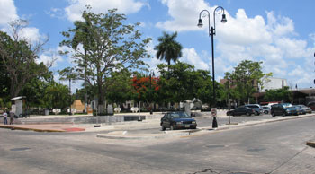 Mejorada Park itself is one of Merida's most tranquil, with its large, bronze sculpture commemorating the Niños Heroes de Chapultepec. The park is often used by local youth for dance or parade practice. On the east side, facing the church and the University buildings, you can find a line-up of men and their trucks available for whatever job you might have for them. If you are moving furniture from one house to another, this is the place to go to rent a crew and a truck to help you. On the west side of the park, is Merida's best Spanish restaurant, El Segoviano, the famous Los Almendros restaurant and the Museo del Arte Popular, the museum of Mexican popular arts and crafts. There is no market in the neighborhood, but the central Galvez mercado is only a few blocks to the south. There is definitely an extranjero presence in this neighborhood, with many a restored colonials and many more on the way.