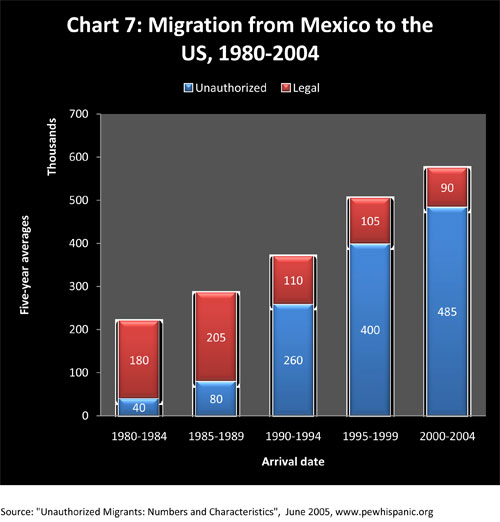 Mexicans choosing to head north of the border continue to be, in large part, from the states of Michoacan, Zacatecas and Guanajuato and net migration has remained fairly constant from the 4th quarter of 2008 until the present day. This represents a reversal of the previous trend, and a large drop from the numbers in the years before 2008, as evidenced by the chart to the right.