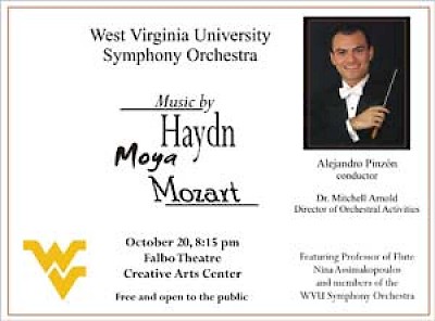 If any of our readers knows anyone who lives within traveling distance of Morgantown, West Virginia, please pass this grand news on to them and ask them to attend this doctoral conducting recital. Maestro Alejandro Pinzon will be conducting the West Virginia University Symphony Orchestra, with professor of flute Nina Assimakopoulos as the featured musical artist. Music will be by Haydn, Moya and Mozart. To learn more about this remarkable young man, spend some time on the Alejandro Pinzon website. What we can tell you, from personal experience, is that having Alejandro Pinzon as a friend is just like having a pocket full of sunshine. Again, please pass this information on to anyone you think might be able to attend this concert. It will surely be a superior performance, and he is a Yucatecan to watch!
